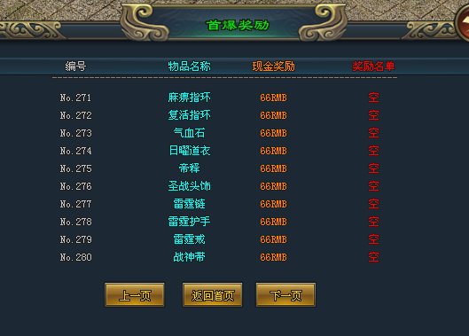 第二个产出就是首爆奖励,不周的装备奖励的数量和货币不同,只有第一个获得此装备的人才会获得奖励,奖励只要有人领取过了,其他的人就没有奖励了